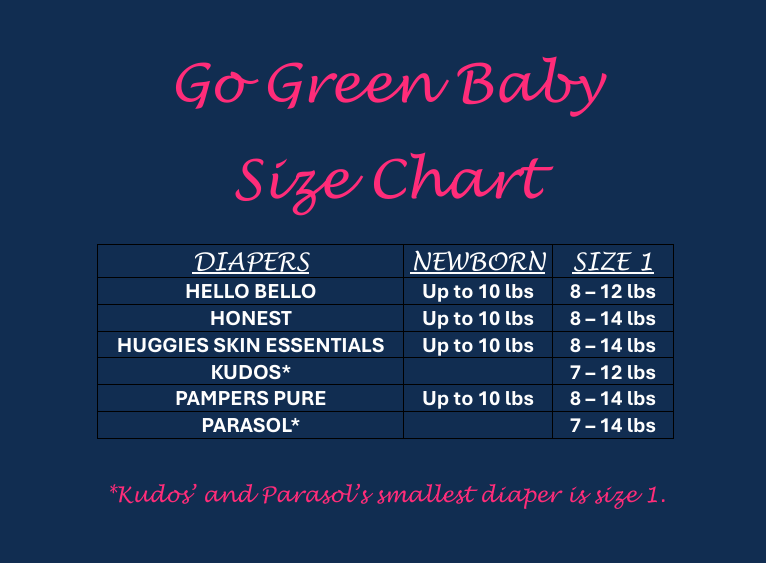 *Kudos and Parasol's smallest diaper is size 1. You will receive the size 1 diaper when purchasing for newborn as well as size 1.