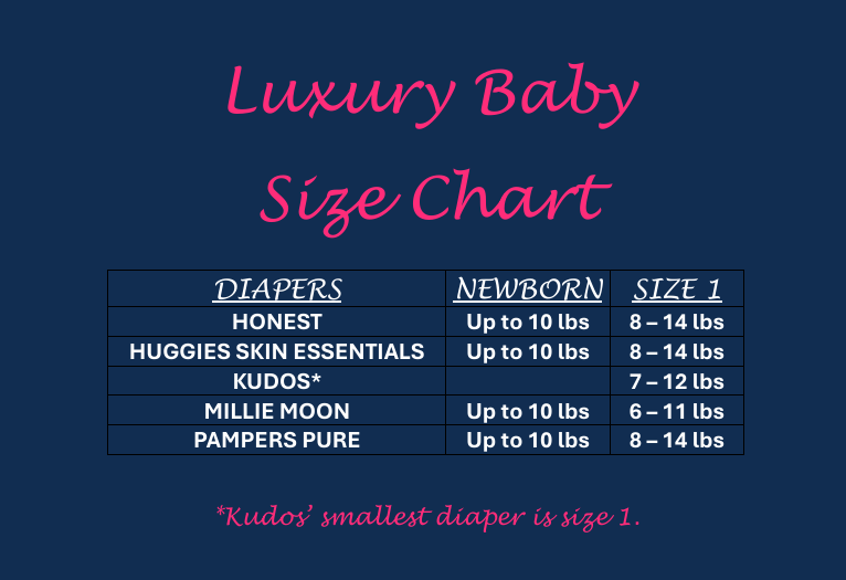 *Kudos smallest diaper is size 1. You will receive the size 1 diaper when purchasing for newborn as well as size 1.